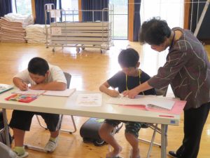 子どもたちは学校から帰ってくると宿題をし、大鶴・夜明の民生児童委員の方に見守りをしていただきました。