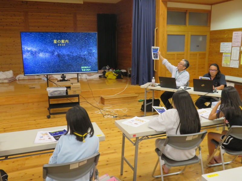 実際に体験しながら学びました。さらに荒倉主事・塩川主事に星の話をしていただきました。