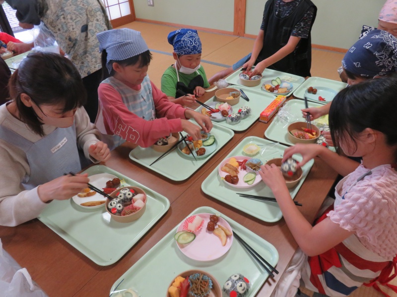 親子でそれぞれ思い思いの「くまモン」のおにぎりを楽しく作りました。