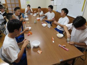 夕食と朝食は大明食推協の方々に協力していただき、子どもたちと一緒に作りました。