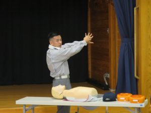 2日目は日田消防署から救急救命士の中原さんをお招きし、「救急救命講習」を