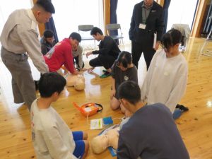 行いました。人形を使って「心肺蘇生法」を学びました。