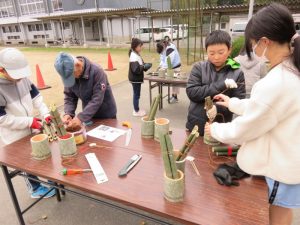 12月26日(火)大明チャレンジ教室第7講は、地域の方々と夜明公民館で「ミニ門松づくり」を行いました。