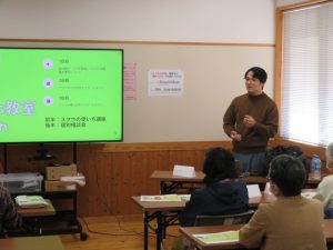 講師は大鶴地区地域おこし協力隊 宮﨑 友彰 さんです。宮﨑さんにはこの間『スマホの学校』の講師をお願いしており今年で3年目となります。