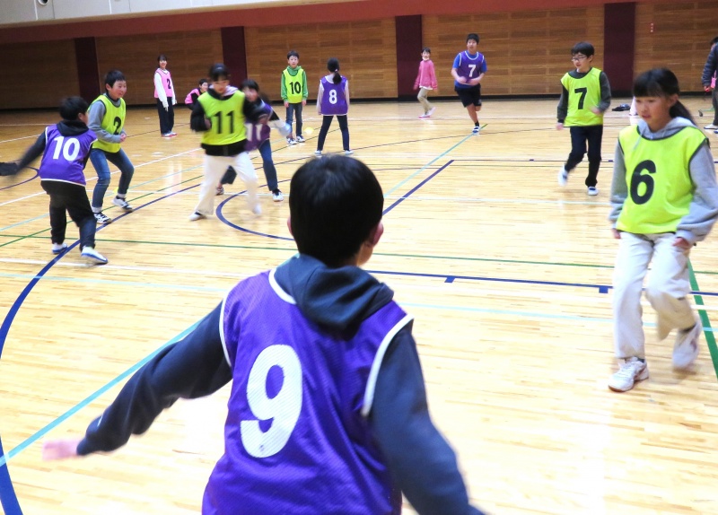 アスレチック場にも雪が残っておりアスレチックと共に雪遊び(雪合戦)を楽しみました。又、体育館では『クバーラ』体験をしました。参加者全員が初めてのクバーラ体験ということで、初めはルールーを覚えるのに大変でしたが、プレーする中で理解し、各班で作戦を立てる等、班での活動ができていました。
