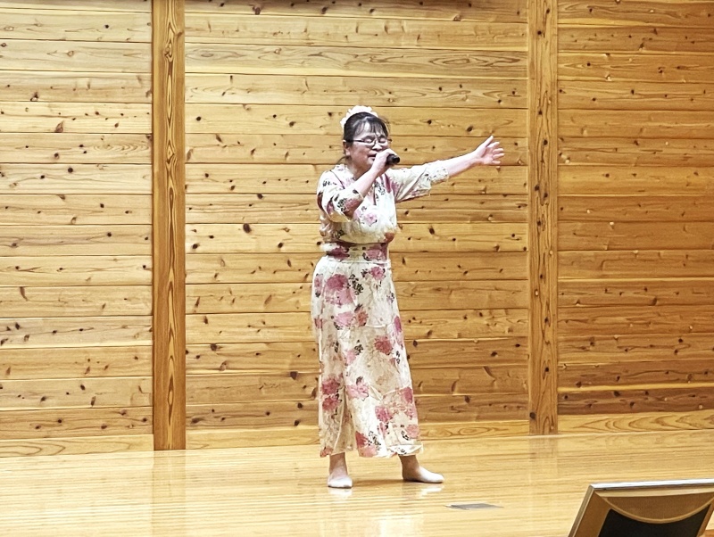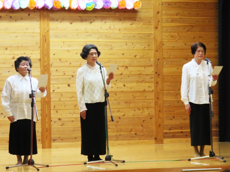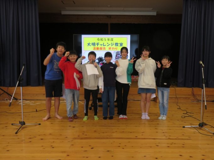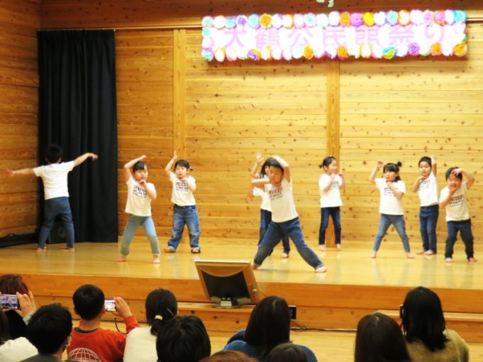 白毫こども園のダンスを皮切りに、「大明チャレンジ教室」活動報告の後、公民館自主学習教室生の発表が行われました。
