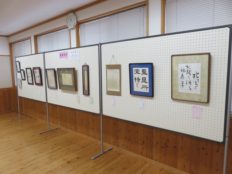 会議・学習室には習字教室、すみれ習字教室、お花教室、静修俳句会の作品が展示されました。