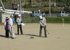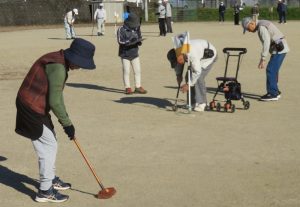 開会式終了後、早速グラウンドゴルフが始まりました。