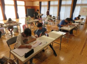 掃除終了後、いよいよ退所式となりますが、その前に4日間の振り返り、4日間宿題立ち合い調理指導に来ていただいたボランテイアスタッフの皆さんにお礼の手紙を書きました。