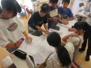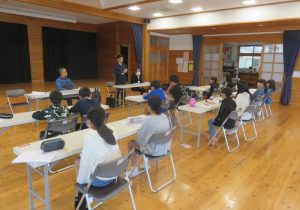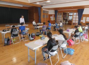 先ず大鶴公民館帰館後入館式を行い、これからの通学合宿での注意事項などの説明と基本班活動となりますので各活動班に分かれて各班での任務分担等を行いました。