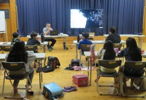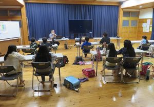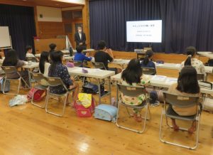 入浴後半組が帰館し、夜の活動を行いました。この日は夜明史談会代表の森山雅弘先生の講話「わたしたちの大鶴・夜明」でふるさとの事を知る事が出来ました。