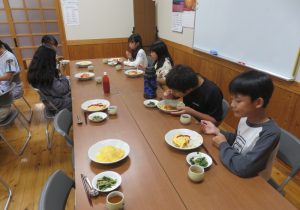 10月18日(水)から10月21日(土)に渡り3泊4日、公民館での生活で参加した児童たちは集団生活を通して規則正しい生活・学習習慣が身につき、使命感や責任感が育まれ、我慢する心や思いやりの心、家族の大切さと感謝の気持ちが芽生えたのではないかと思います。1日目の夜は興奮して寝れない子がいましたが、2日目以降は皆規則正しい生活が出来ていたと思います。今回の通学合宿で得た経験をこれからの生活に生かしていただきたいと思います。