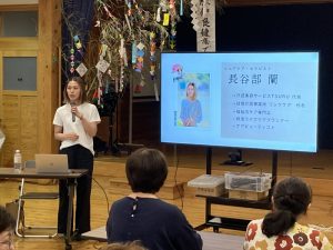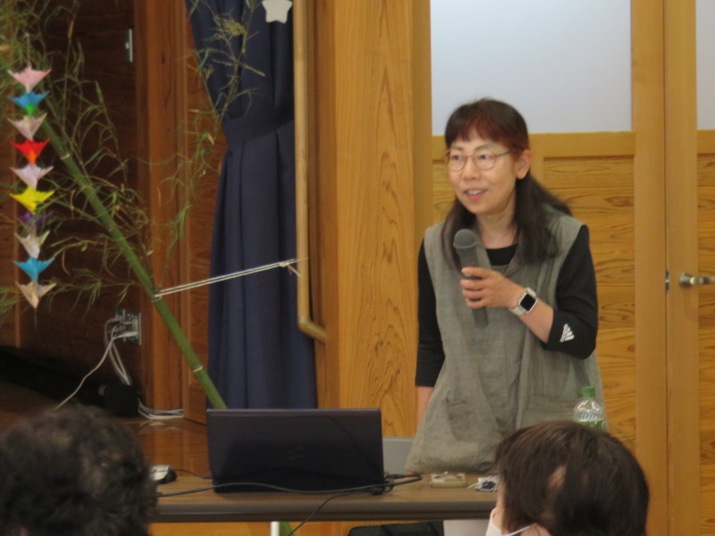 最初に七夕飾りを作り、その後、講師に防災士の原田京子さんをお招きし、
