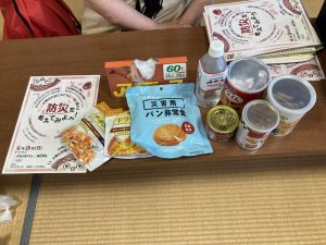 防災リュックの中身を見せていただき、防災食を準備しておくことの大切さを