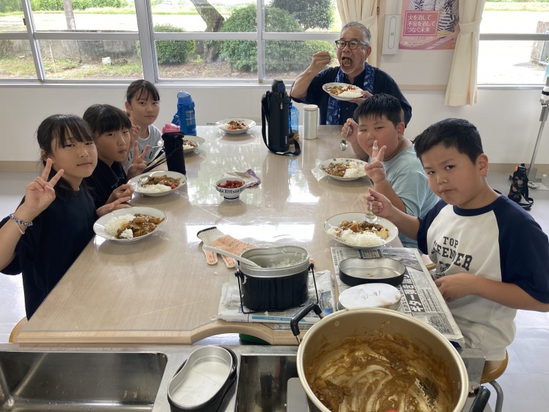 薪を使って飯盒でご飯を炊き、みんなで美味しいカレーを作りました。