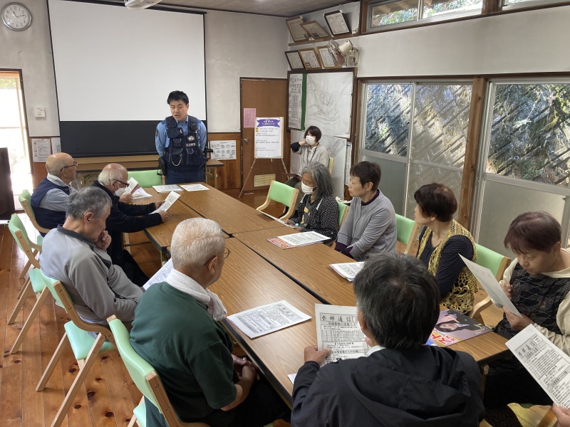次に大明駐在所の河野巡査長から交通安全、特殊詐欺への