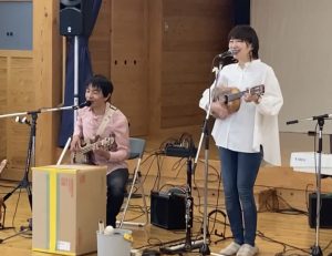 後半は熊本市から夫婦デュオのべすぱの2人によるコンサートを開催。