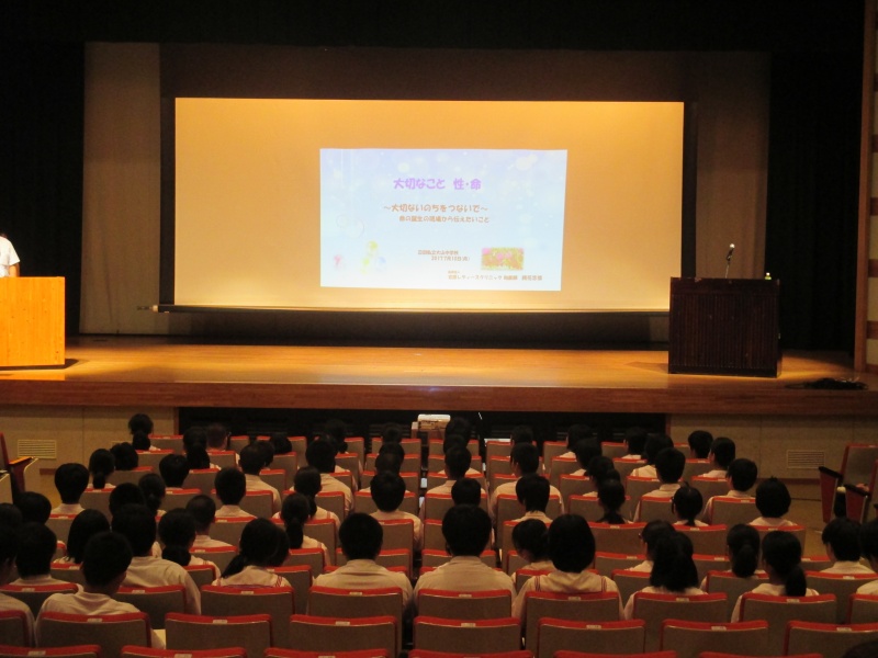7月10日(月)、大山公民館ホールで講演会「大切な命をつないで~命の誕生の現場から伝えたいこと~」が開催されました。(大山中学校育友会主催)