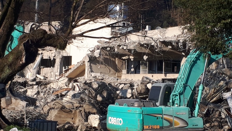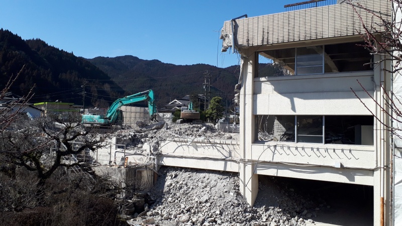 1月末から始まった旧大山町役場庁舎の解体工事。