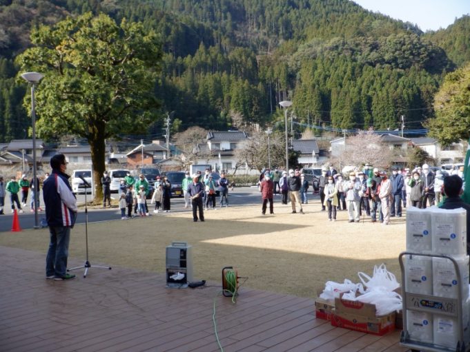 昨年11月に悪天候で中止となっていた大会ですが、気候の良い3月に行いたいと実施、大山文化センター芝生広場で開会式を行いました。大山スポーツ協会諌山会長が「健康のため、今日は自分のペースで楽しく歩きましょう」とあいさつ。