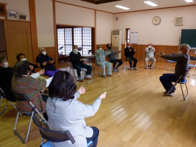 講師の平山さんによる指導で座って毎日続けられる「健康体操」を学習しました。
