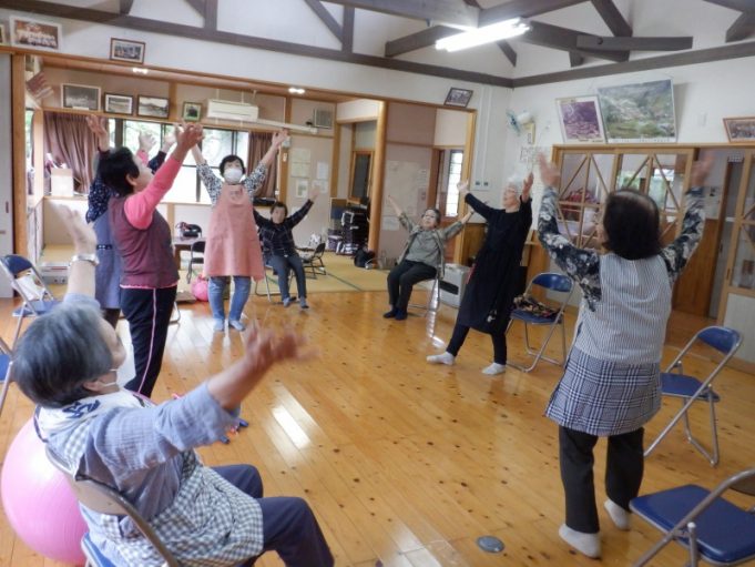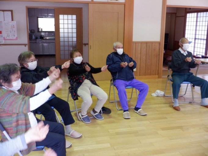現在会員は10名、音楽に合わせての体操とレクレーションで頭と体をほぐします。レクレーションではじゃんけんゲームで大盛り上がり。