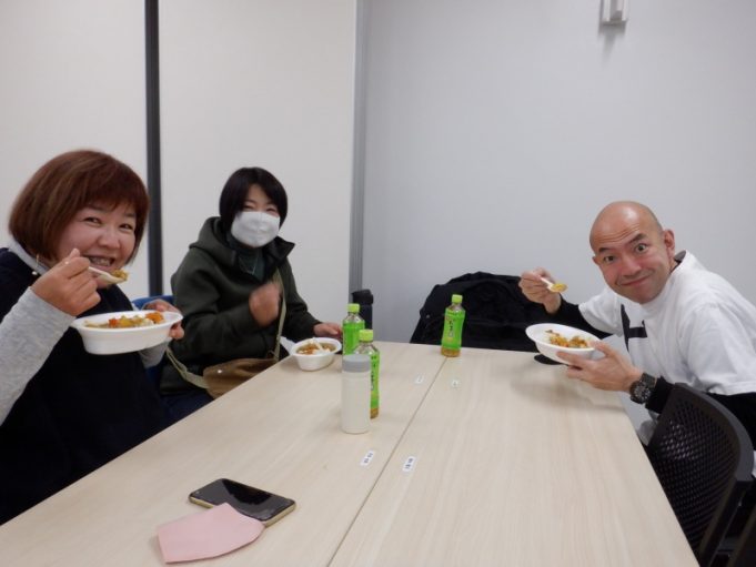 調理室では大山食推協の皆さんがカレー作りに大忙し。