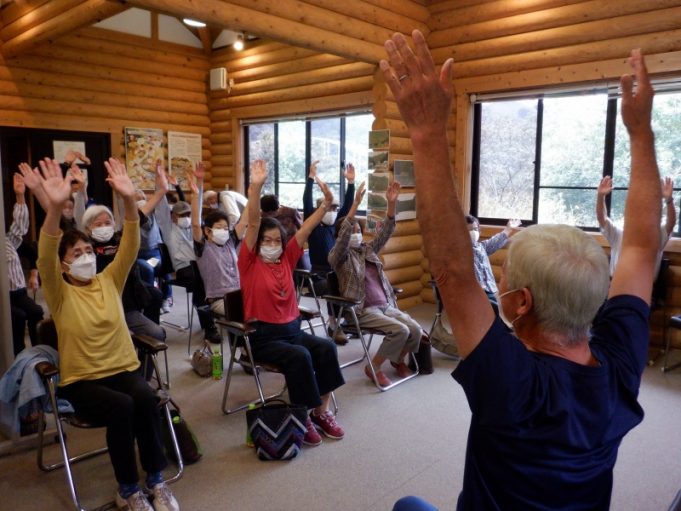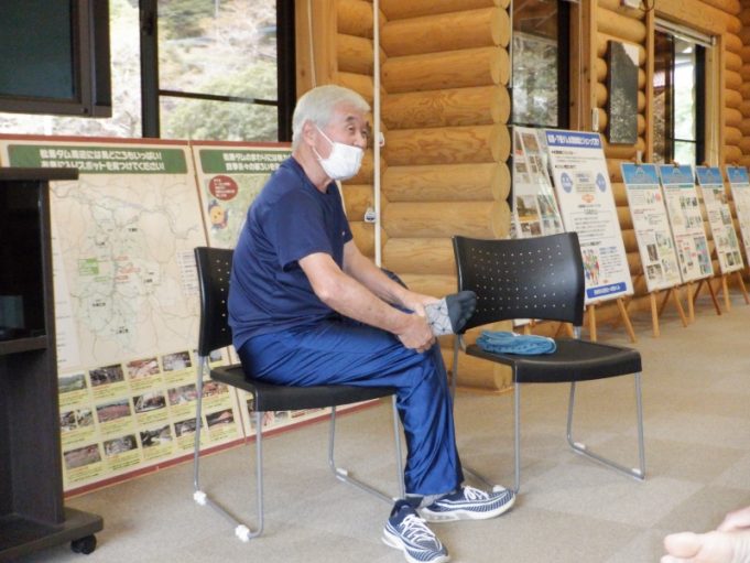 体操指導は平山さんです。椅子に座ってできるストレッチ体操を教えていただきました。