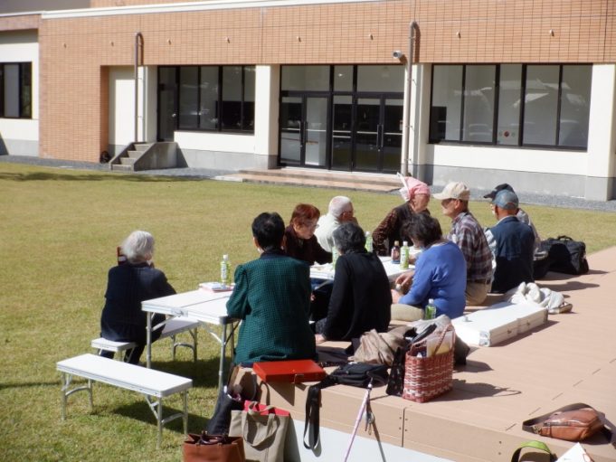 秋晴れの下、大山公民館自主学習教室「短歌会」会員さんが、大山文化センター芝生広場でお弁当開きしていました♪