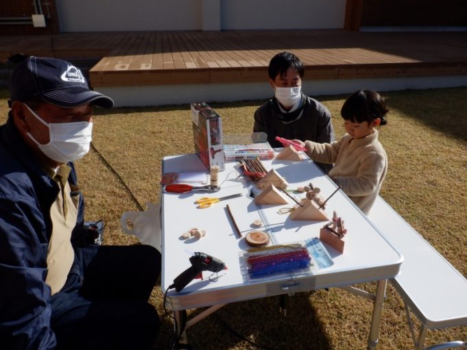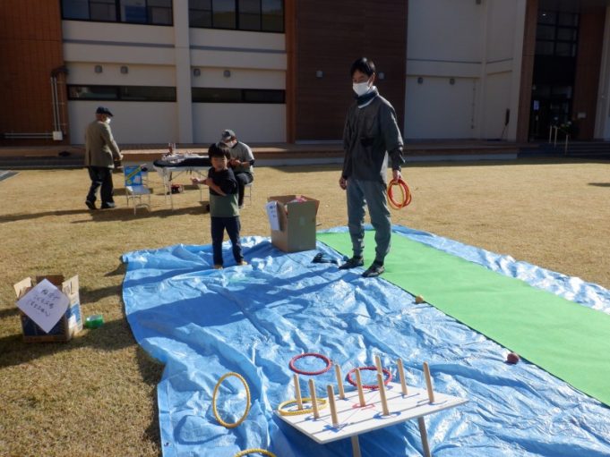 芝生広場では木の廃材を使った「工作コーナー」「輪投げ」「パットグラウンドゴルフ」にちびっ子たちが集まりました。