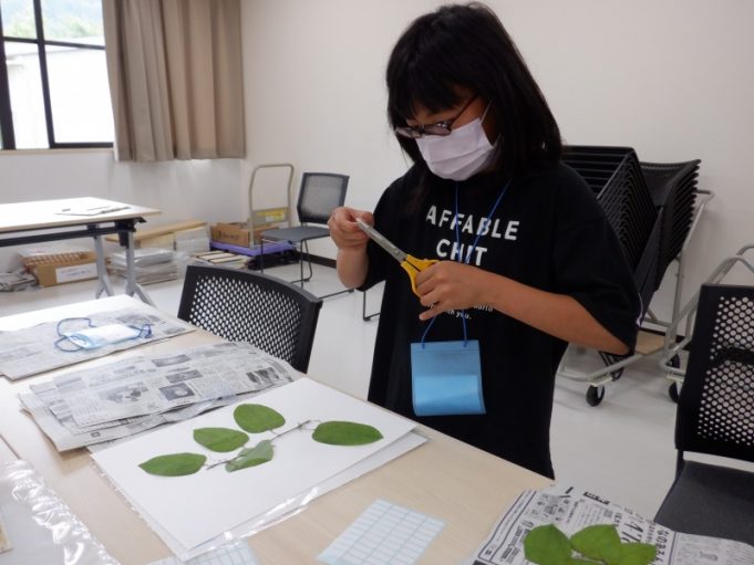 第1講「田来原春の植物観察会」の際に採集した植物たちを2週間乾燥紙にはさんだものを標本として完成させる作業です。