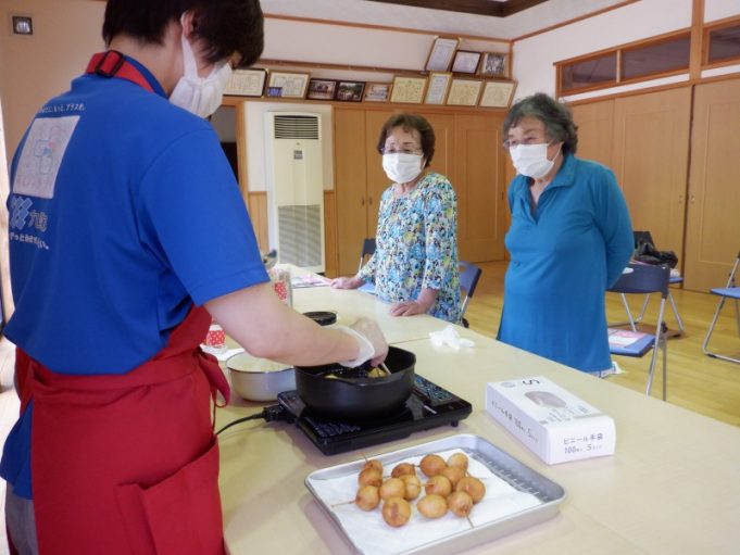 次は大山町集落支援員のお二人にお手伝いいただき防災食を作りました。