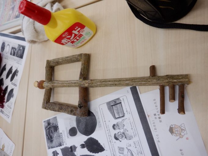 昨年10月16日のチャレンジ教室の活動で田来原公園内のどんぐり拾いを行いました。そのどんぐりを使っての「どんぐり工作」です。講師は日田少年少女発明クラブの梶原さんです。