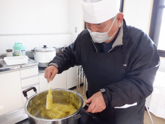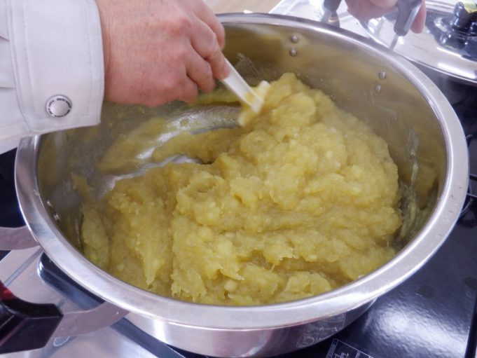 さつまいものきんとんはよ~く練ります。きれいな照りがでました♪