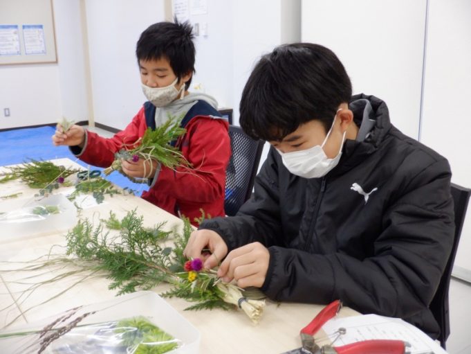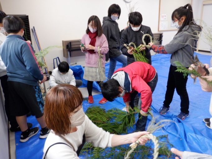 令和3年12月25日 大山っ子チャレンジ教室「日田杉を使ったしめ縄作り」の様子