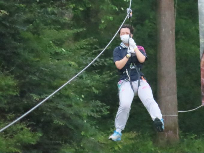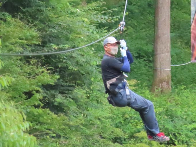 ジップスライドは風を切ってビュンビュン!保護者のお父さん、お兄さん、お母さんも頑張りました
