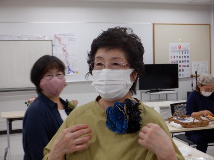 講座が終わってコサージュを付けたまま帰宅する人もいました。