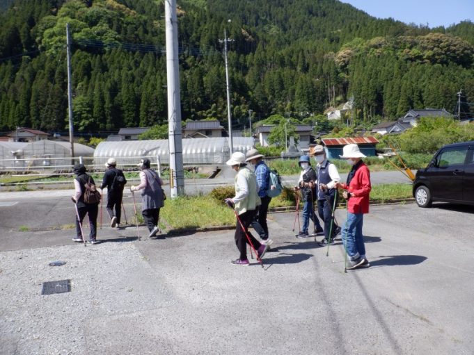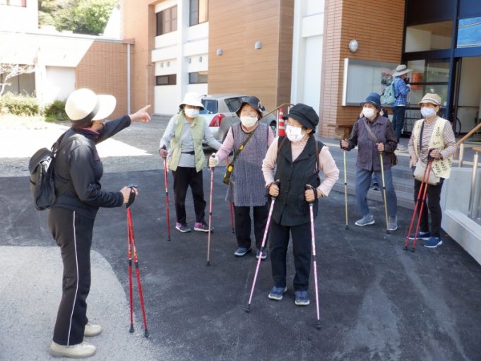 手洗い講座後は、いつものように公民館周辺をノルディックウォークしました。
