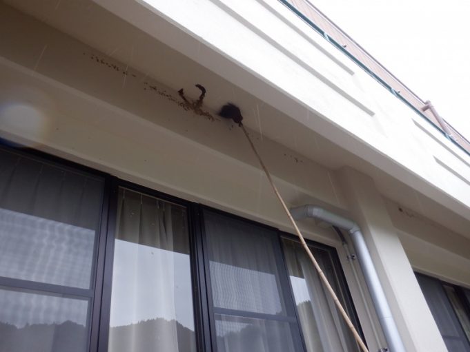 つばめが公民館の軒下あちこち巣を作りだしました。