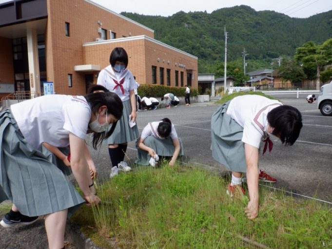 大山中学校生徒のみなさんが毎年数回、大山公民館のボランティア清掃をしてくださっています。