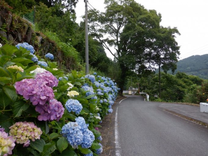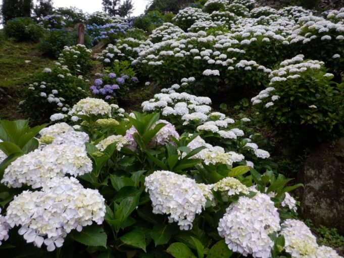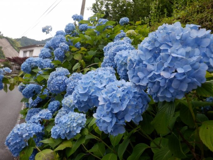 大山の清流地区にある高平神社のあじさいが見頃を迎えています。