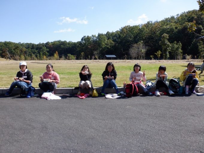 もみじの紅葉には少し早かったですが、「あけび」「栗」「松ぼっくり」「むかご」などの実を拾ったり、草花の名前を大人のスタッフに聞きながら歩きました。「空き缶」「ゴミ」を拾う児童も。森を大切にする気持ちが芽生えました。