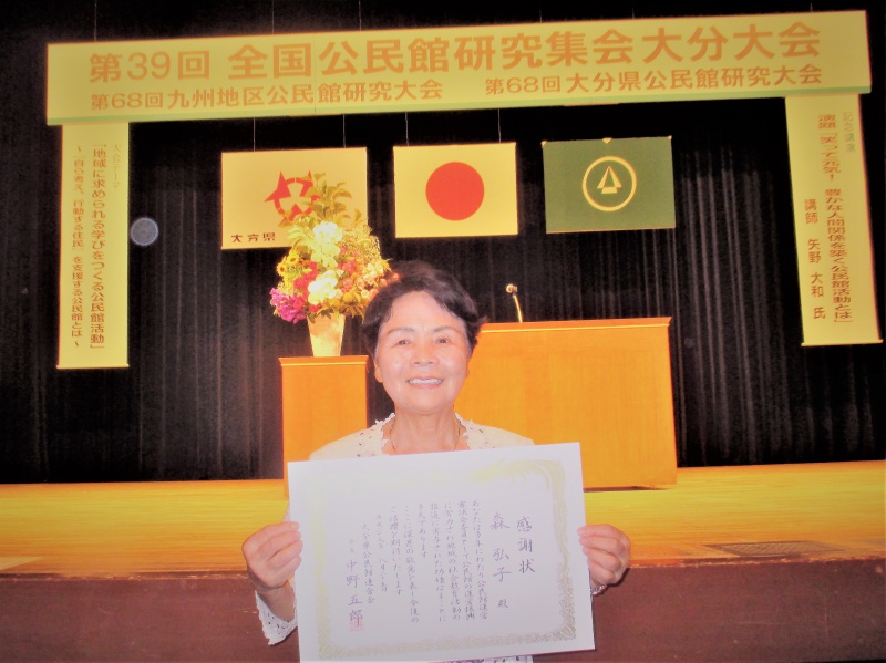 大山公民館運営委員会 森弘子会長が、この度「大分県公民館連合会表彰の公民館運営審議会委員表彰」を受けました。