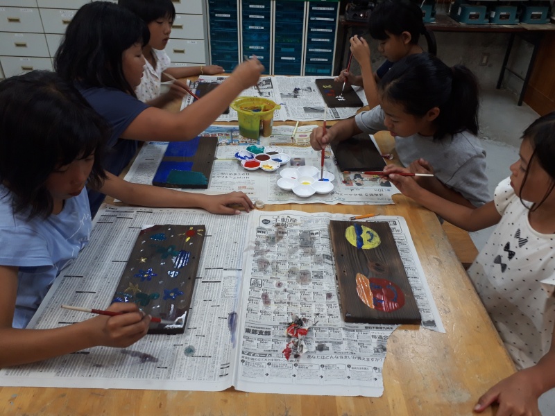 キャンプ3日目。夜は創作活動です。ホットホビーか焼き杉を選んで作りました。