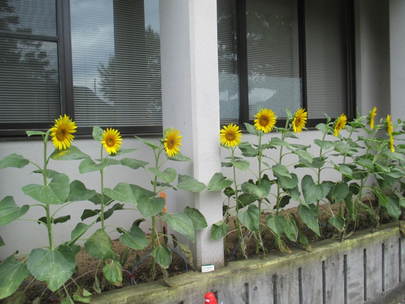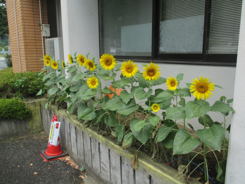 大山公民館の南側出入口にある花壇の向日葵が、今綺麗に咲いています!k¥(8月15日撮影)