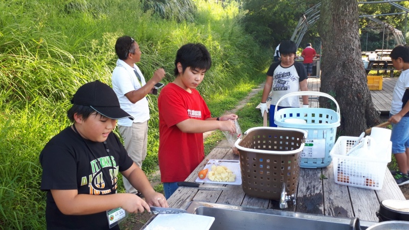 野外調理。カレーライス作りです。
