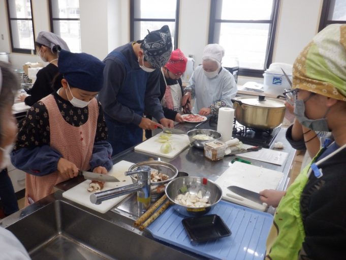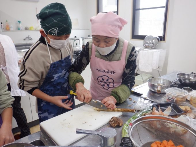 2月15日(土)、大山公民館調理室で大山っ子チャレンジ教室第9講「郷土料理を作ろう!」をテーマに「だんご汁」作りをしました。