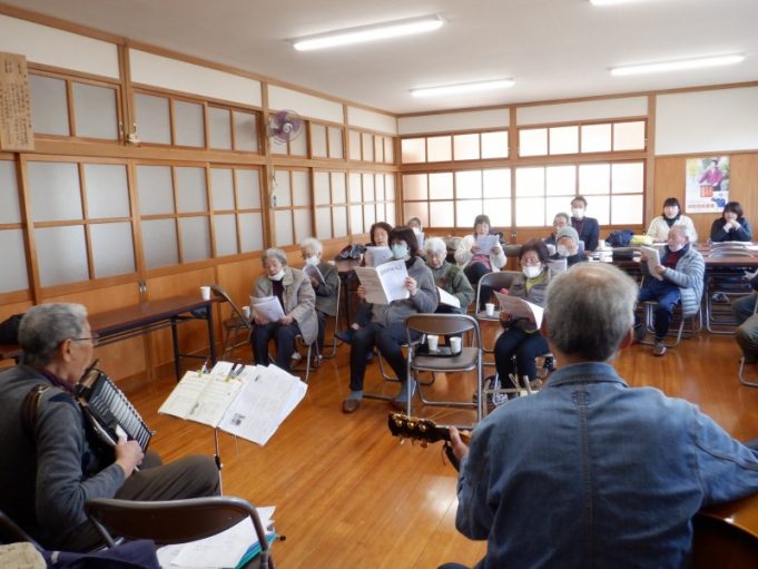 参加者は森山さんのアコーディオン、樋口さんのギター演奏にあわせて、唱歌や懐かしの歌謡曲などを歌いました。曲の合間には思わず笑ってしまうような楽しいトークもあり会場は笑顔に包まれました。