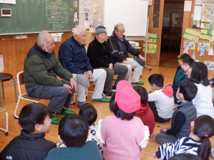 2月18日、大山小学校1.2年生22名が昔の遊びを体験しました。