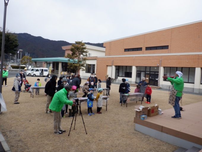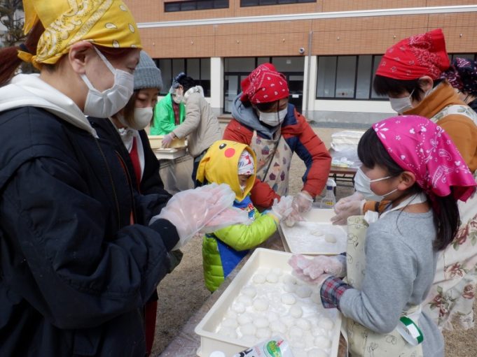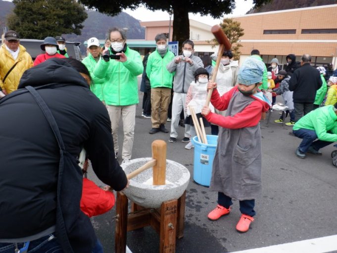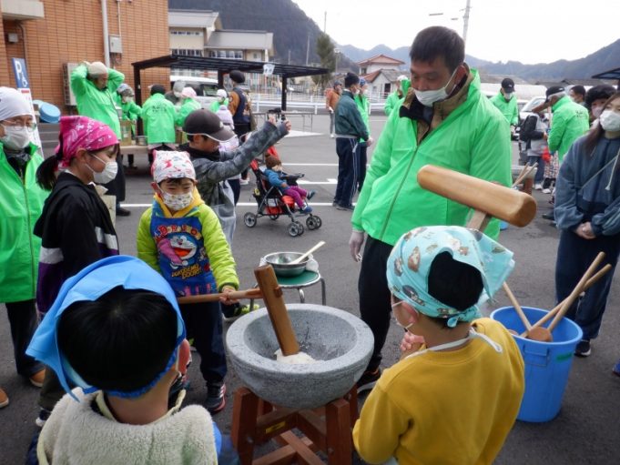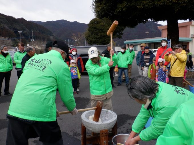 2月23日(日)、大山小中学校育友会と大山すみいい会が「もちつき大会」を大山公民館駐車場でおこないました。